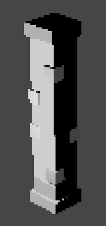 3D modeling interface showing a tall, twisted structure with lighting effects in Blender.